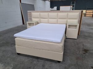 Fraaie Achterwand voor een boxspring of ledikant, hier past een boxspring of ledikant 180 breed voor. Afgewerkt met Flex verlichting en usb aansluiting.